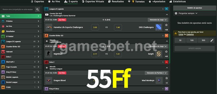 O 55Ff oferece uma grande seleção de opções de apostas em e-sports com probabilidades competitivas